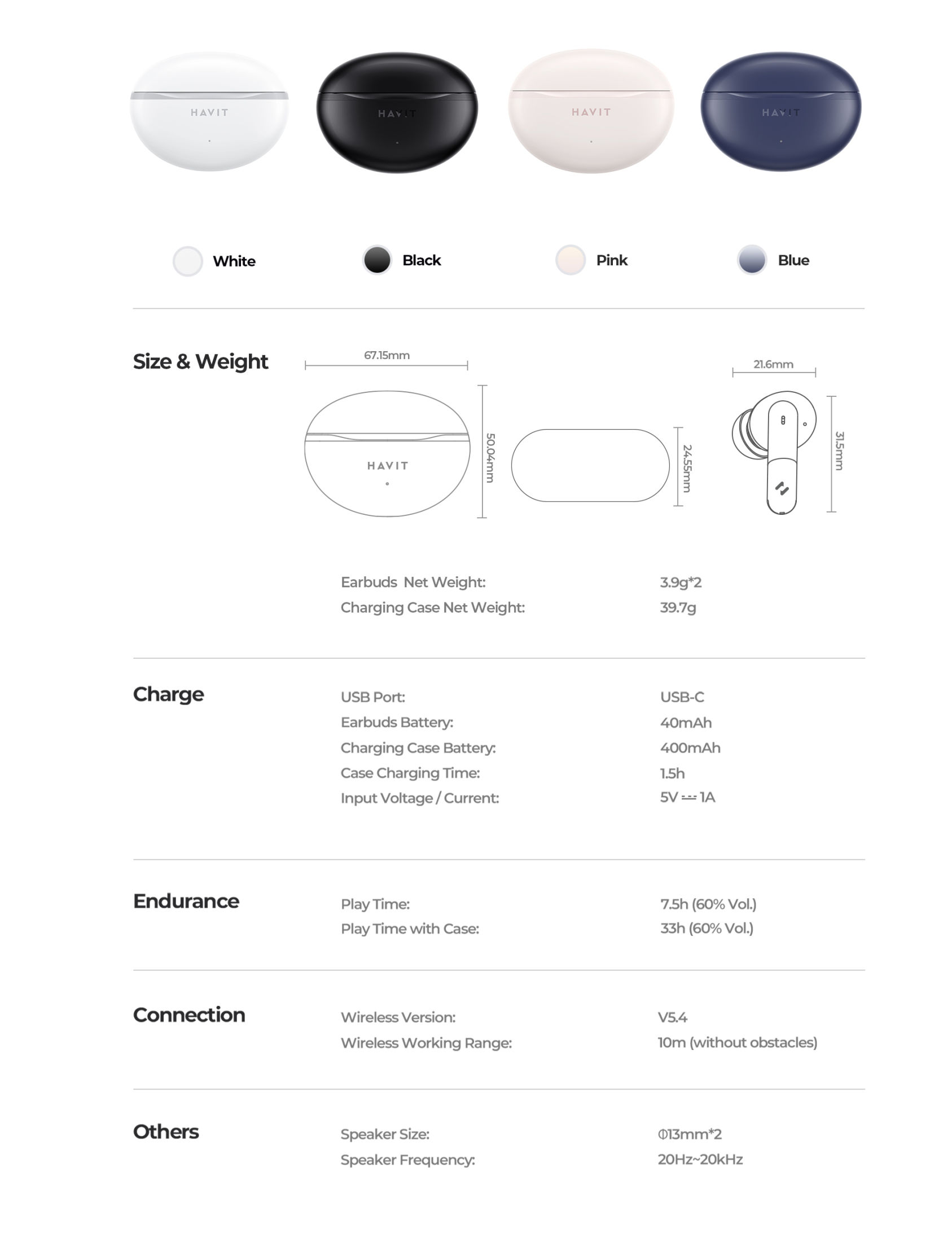 Havit TW986 True Wireless Earbuds - Black