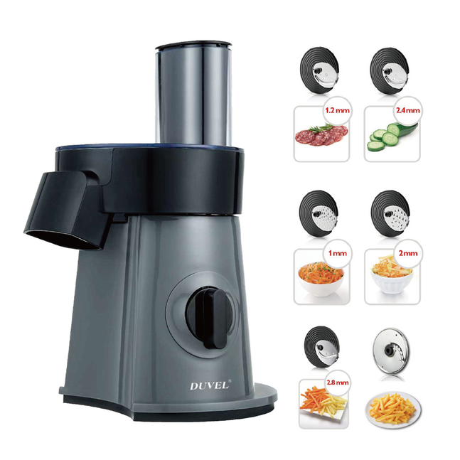 20-240V,50/60Hz,200W(full copper motor) 6-IN-1 *Large output cuts directly into your bowl. *All accessories are dishwasher free. * Process all your favourite ingredients from vegetables to cheese. *6 inserts for a variety of results in any shape and size. *XL feeding tube suitable for various sizes of food. *SUS304 Stainless steel disc inserts for perfect cutting results