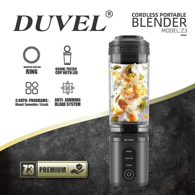 *600ml Tritan cup with lid *600ml cup capacity ( 470ml working capacity) *Portable handle design *3 Auto- programs: Blend/Smoothie/ Crush *Optimized Airflow design prevents rapid temperature rise *Compact for car / bag storage *220-240V, 50-60Hz, 180W