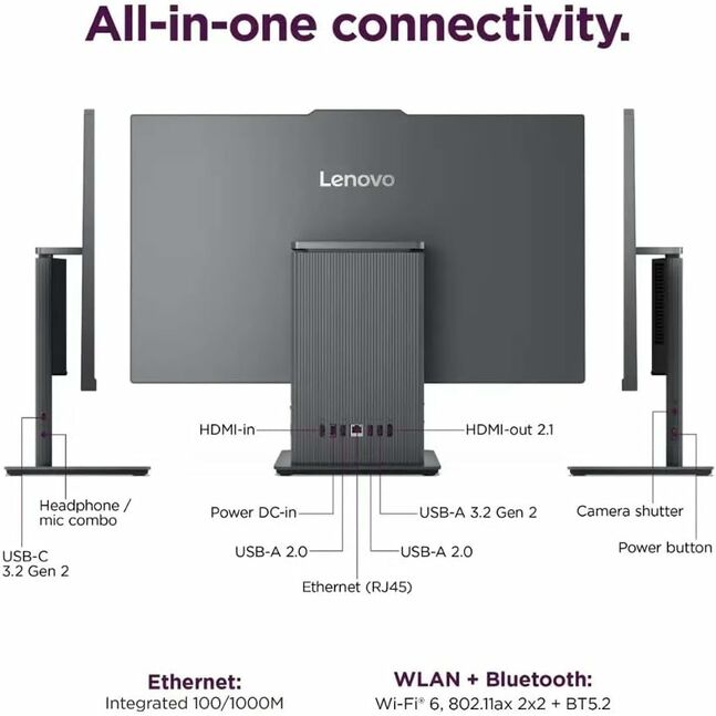 Lenovo IdeaCentre All-in-One Desktop Computer, 24" FHD , 6-core AMD Ryzen 5 7535HS, 16GB DDR5, 512GB M2.NVMe